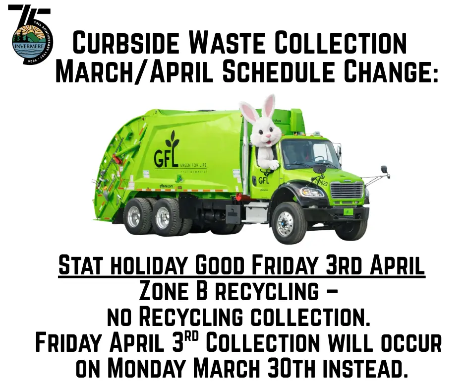 Curbside Waste Collection – Schedule Change (March/April) for Good Friday