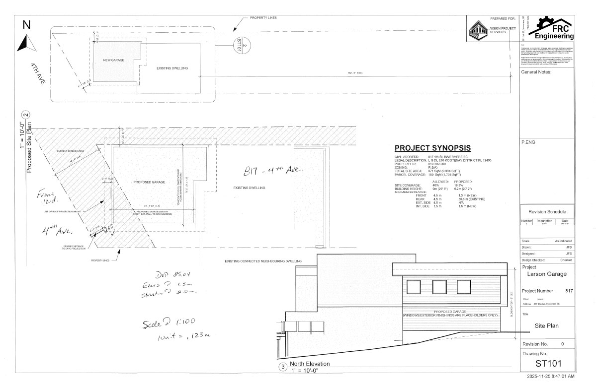 DVP 25.04 is being proposed to allow for the construction of an attached front yard garage with a potential suite above at 817 4th Avenue.