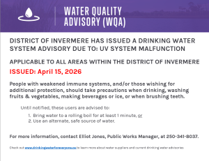 DISTRICT OF INVERMERE HAS ISSUED A DRINKING WATER SYSTEM ADVISORY DUE TO: UV SYSTEM MALFUNCTION